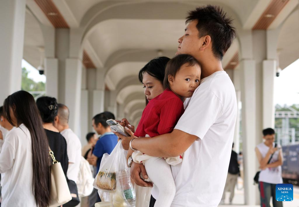 Passengers wait to board a train at Pu'er Railway Station in Pu'er City, southwest China's Yunnan Province, Sept. 20, 2025. As of Sept. 20, the China-Laos Railway has transported more than 59 million passengers since its opening in December 2021, according to China Railway Kunming Group Co., Ltd. (Xinhua/Xing Guangli)