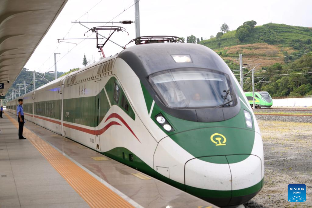 A train pulls into Pu'er Railway Station in Pu'er City, southwest China's Yunnan Province, Sept. 20, 2025. As of Sept. 20, the China-Laos Railway has transported more than 59 million passengers since its opening in December 2021, according to China Railway Kunming Group Co., Ltd. (Xinhua/Xing Guangli)