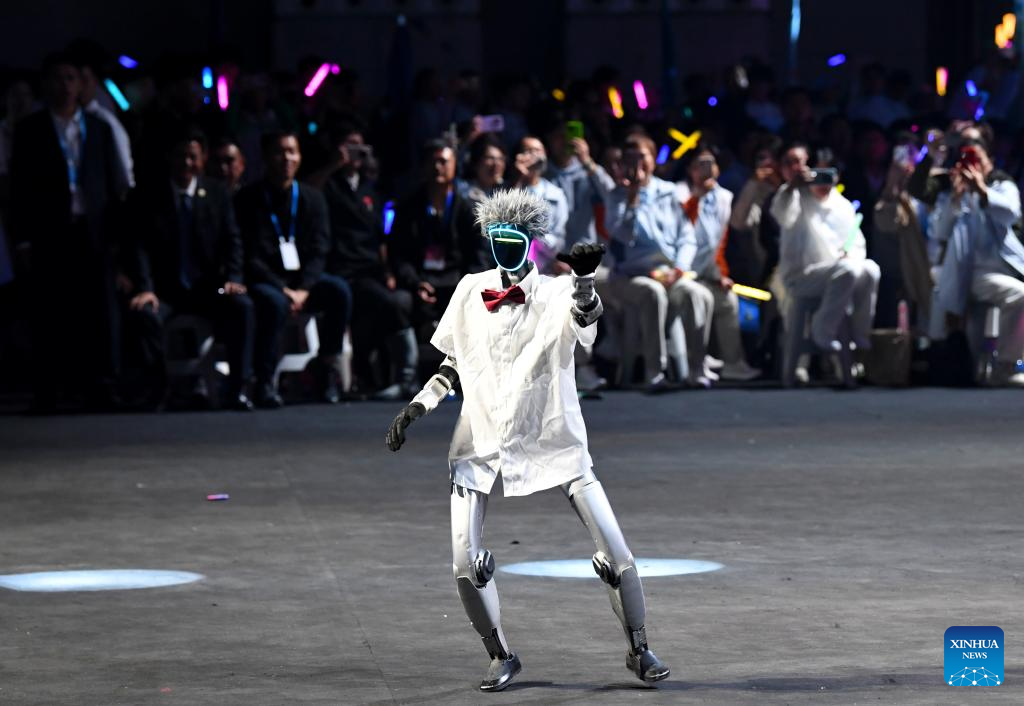 A robot performs at the opening ceremony of the 3rd Vocational Skills Competition in Zhengzhou, central China's Henan Province, Sept. 19, 2025.