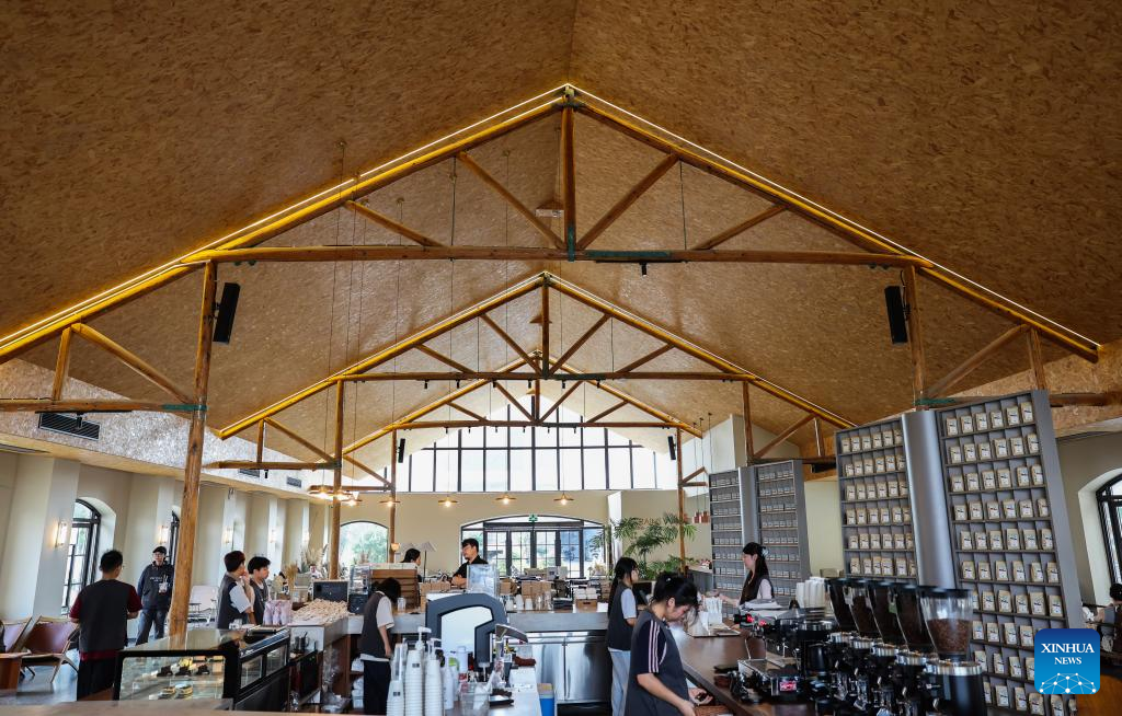 This photo taken on Sept. 19, 2025 shows a cafe in a barn-modified cultural industrial park in Shendang Town in Haiyan County, Jiaxing City, east China's Zhejiang Province. Shendang Town has been developing a distinctive cultural and tourism route with its own features, making the town a highly sought-after tourist destination in the Yangtze River Delta region since 2024. It has integrated its most distinctive culture, intangible cultural heritages, landmarks, and surrounding cultural tourism projects with the characteristics of the town, offering visitors exceptional cultural and tourism experiences.
