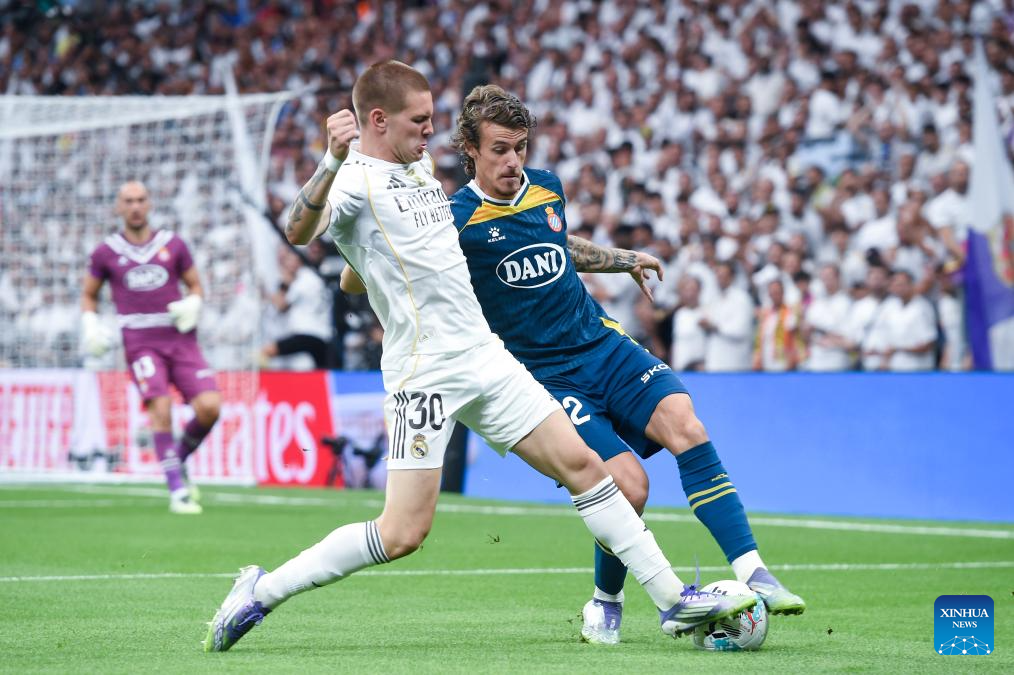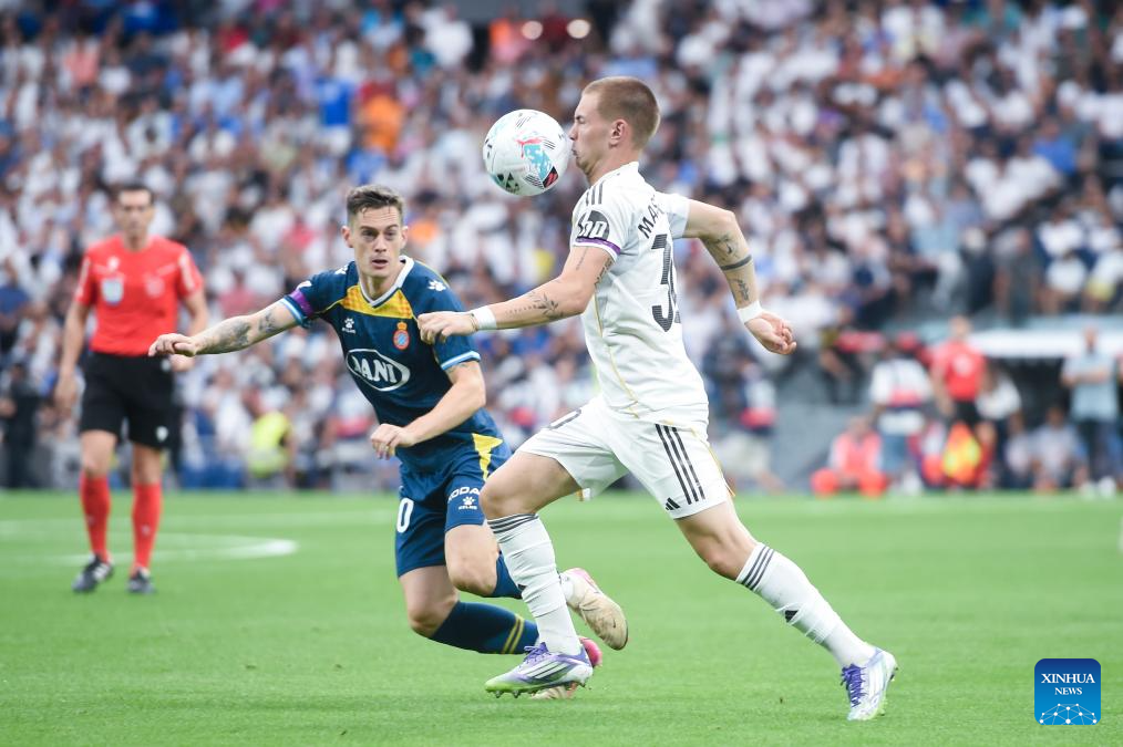 MADRID, Sept. 20 (Xinhua) -- Real Madrid made it five wins from five games at the start of the new La Liga season with a relatively routine 2-0 win at home to Espanyol on Saturday afternoon.