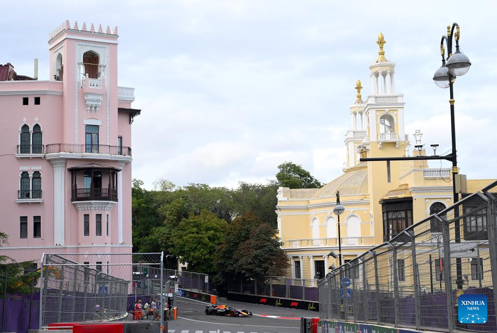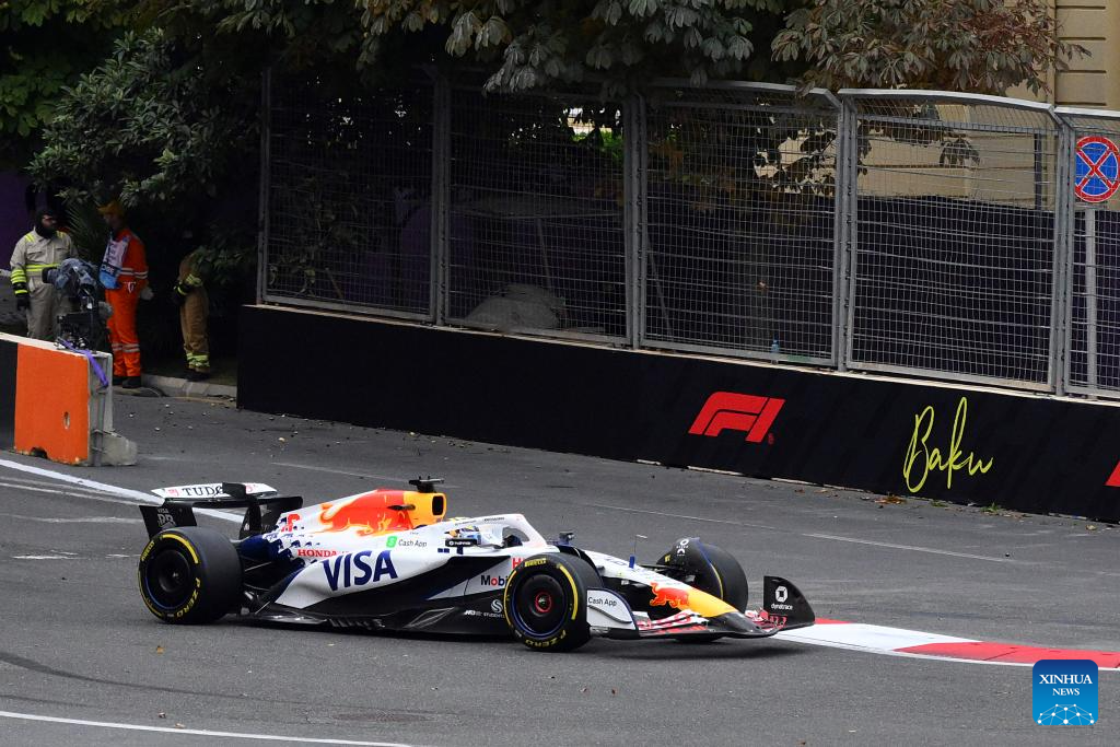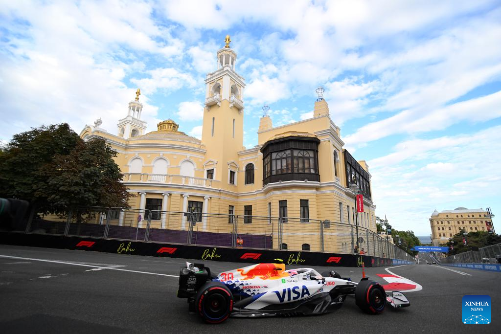 Racing Bulls' driver Tsunoda Yuki of Japan competes during the qualifying session of the 2025 Formula One Azerbaijan Grand Prix in Baku, Azerbaijan, Sept. 20, 2025. (Photo by Tofik Babayev/Xinhua)