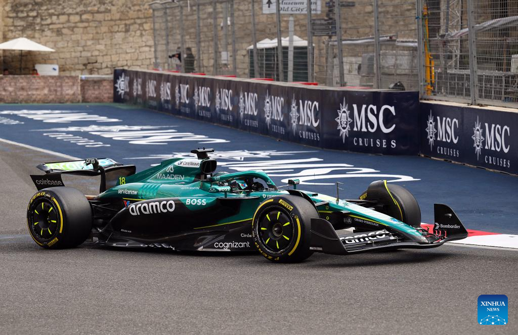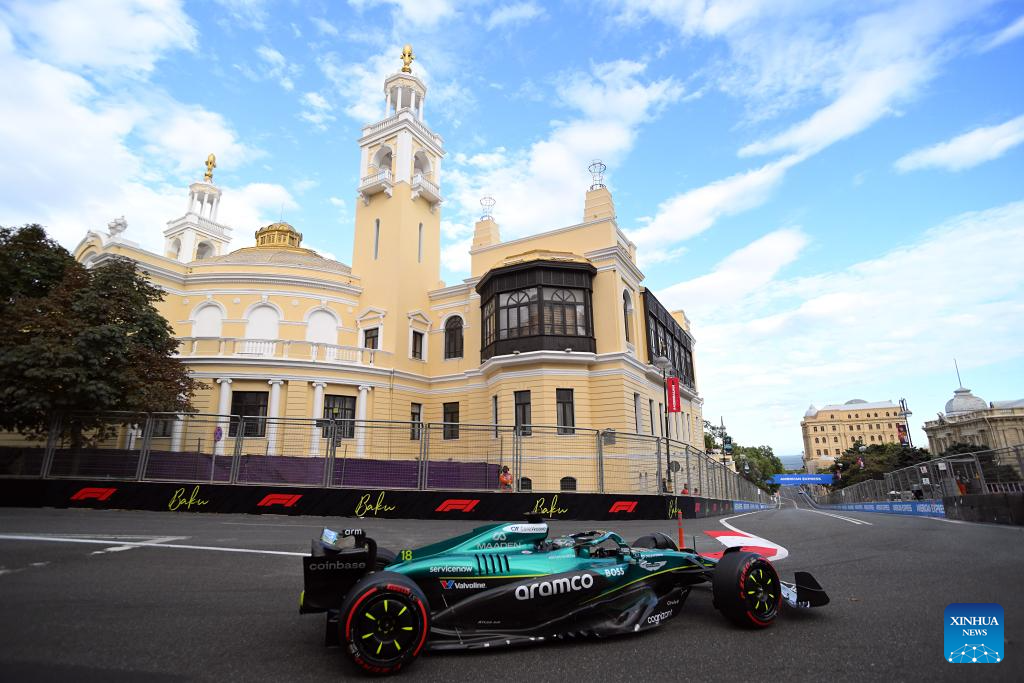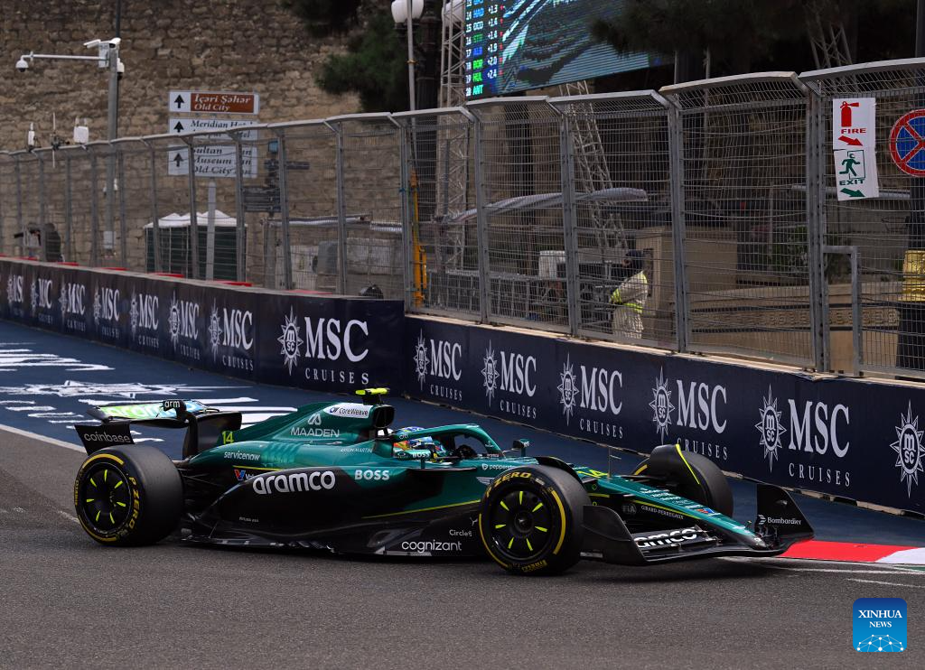 Aston Martin's driver Fernando Alonso of Spain competes during the qualifying session of the 2025 Formula One Azerbaijan Grand Prix in Baku, Azerbaijan, Sept. 20, 2025. (Photo by Tofik Babayev/Xinhua)