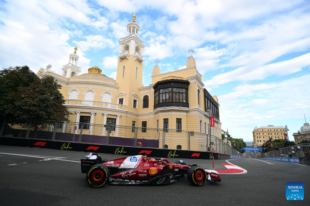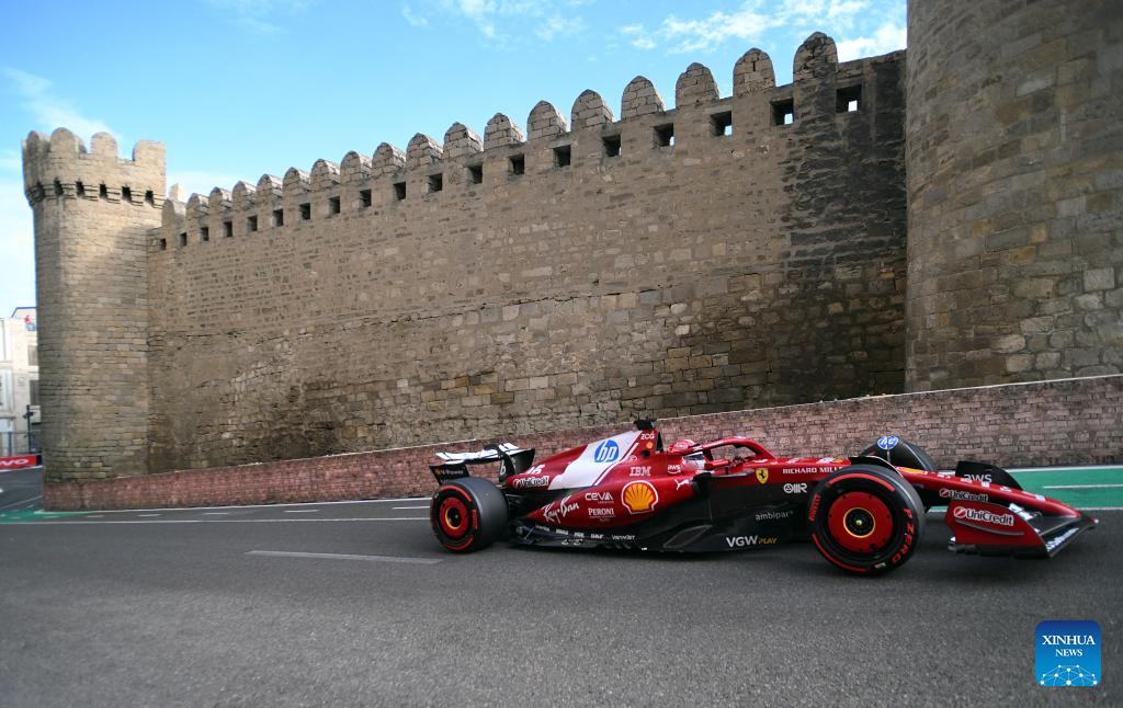 Ferrari's driver Charles Leclerc of Monaco competes during the qualifying session of the 2025 Formula One Azerbaijan Grand Prix in Baku, Azerbaijan, Sept. 20, 2025. (Photo by Tofik Babayev/Xinhua)