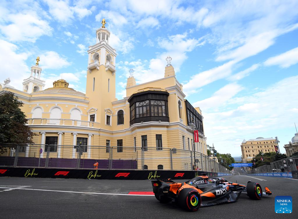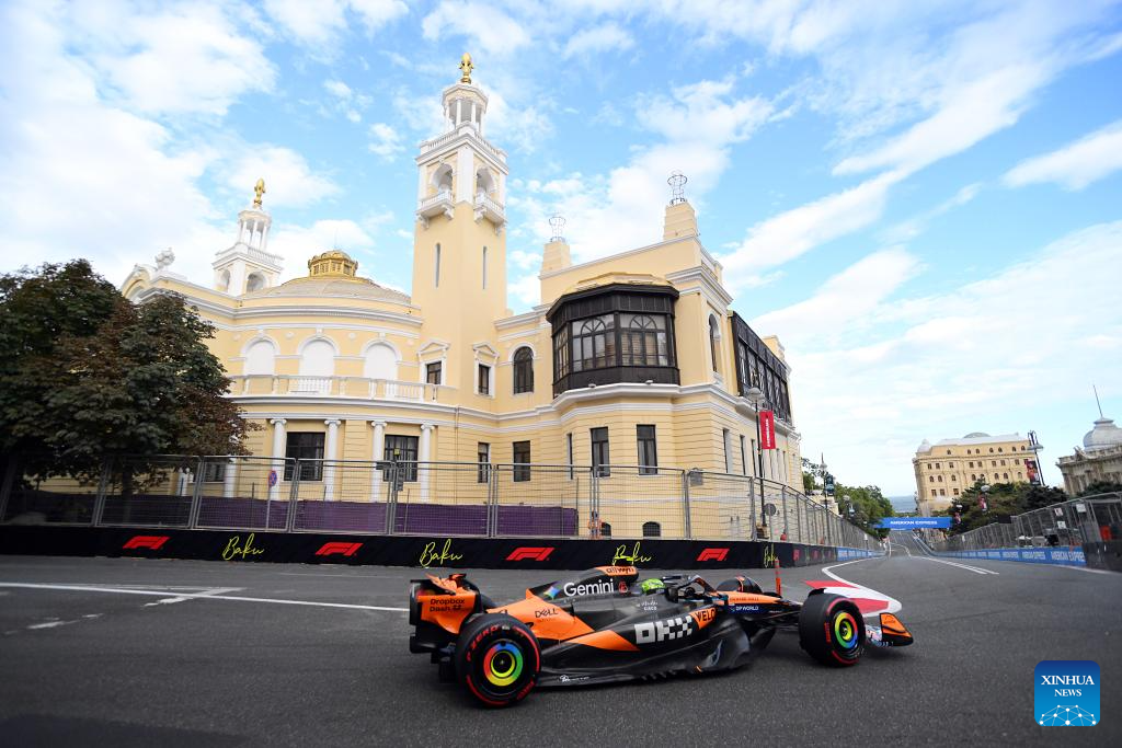 McLaren's driver Lando Norris of Britain competes during the qualifying session of the 2025 Formula One Azerbaijan Grand Prix in Baku, Azerbaijan, Sept. 20, 2025. (Photo by Tofik Babayev/Xinhua)