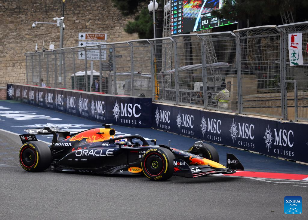 Red Bull Racing's driver Max Verstappen of the Netherlands competes during the qualifying session of the 2025 Formula One Azerbaijan Grand Prix in Baku, Azerbaijan, Sept. 20, 2025. (Photo by Tofik Babayev/Xinhua)