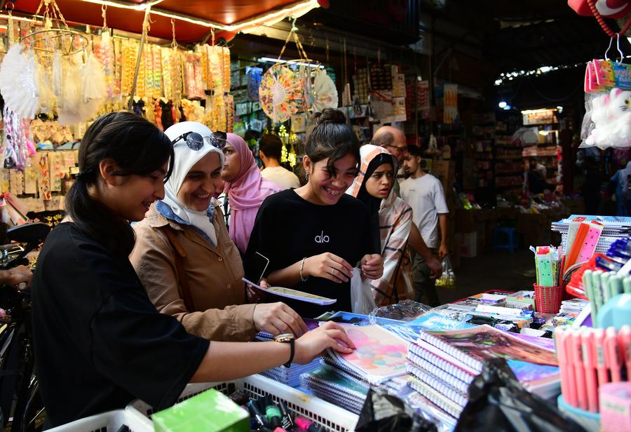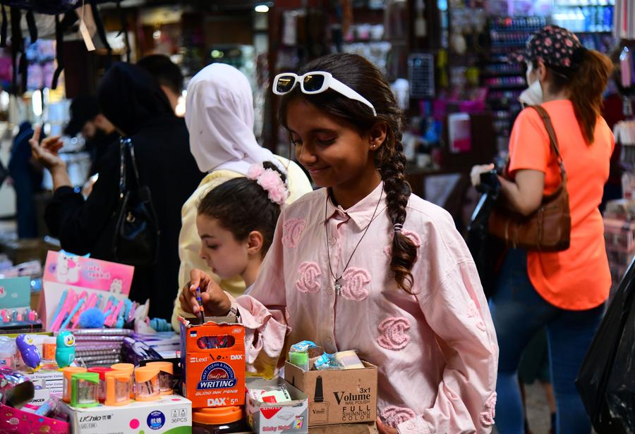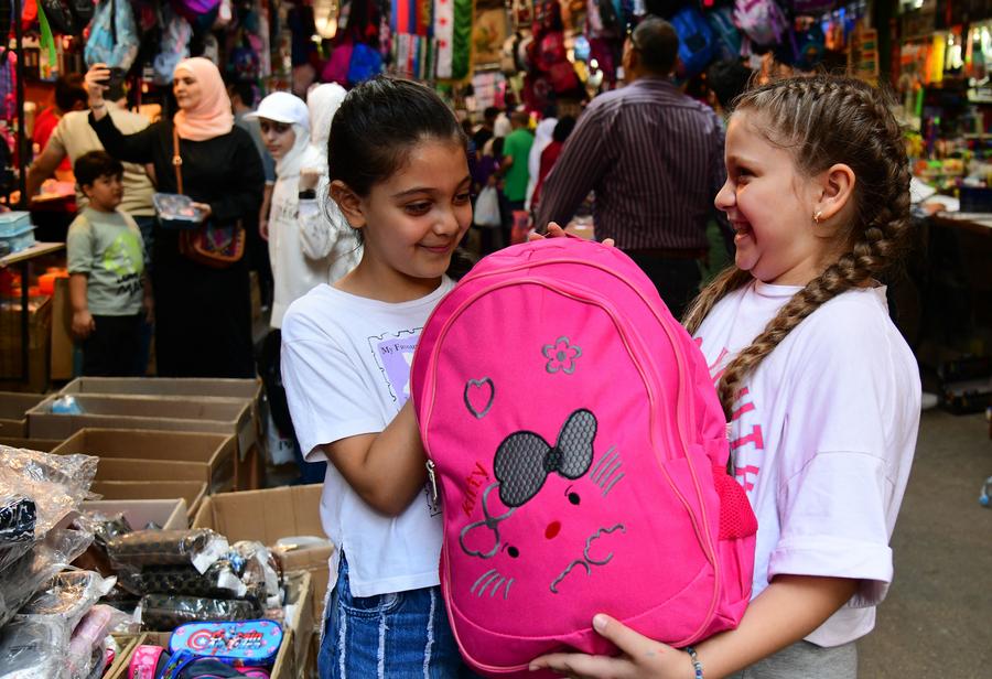 DAMASCUS, Sept. 20 (Xinhua) -- With the new school season in Syria set to begin on Sunday, Damascus' historic Asruniyeh market comes alive with colorful displays of cartoon-themed backpacks and stationery. The place hums with the chatter of bargaining parents, the laughter of children, and vendors calling out their offers to draw in shoppers.