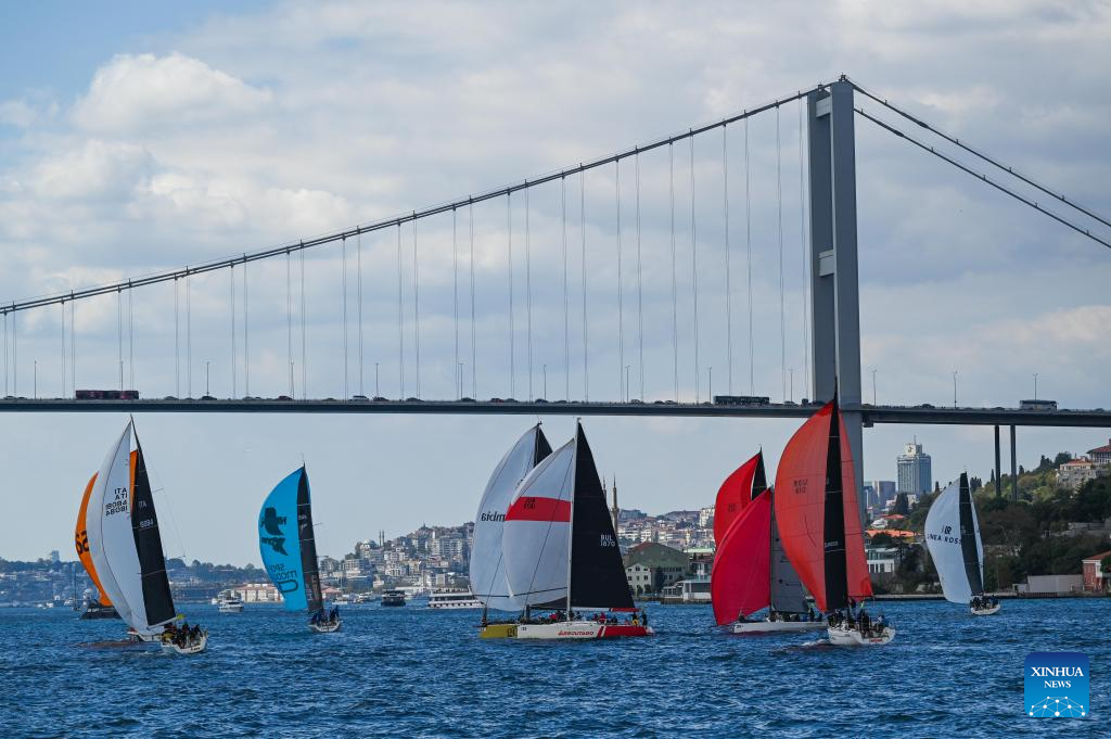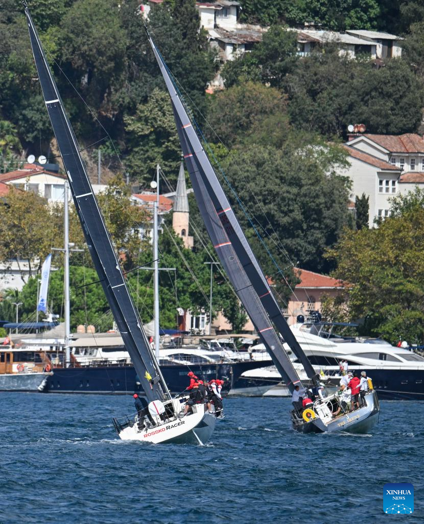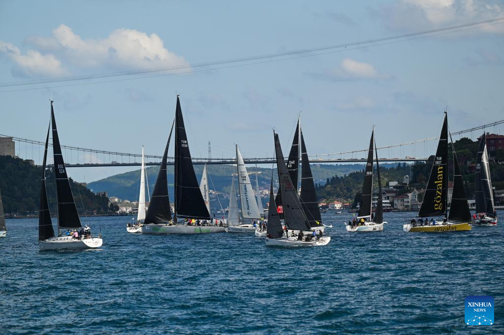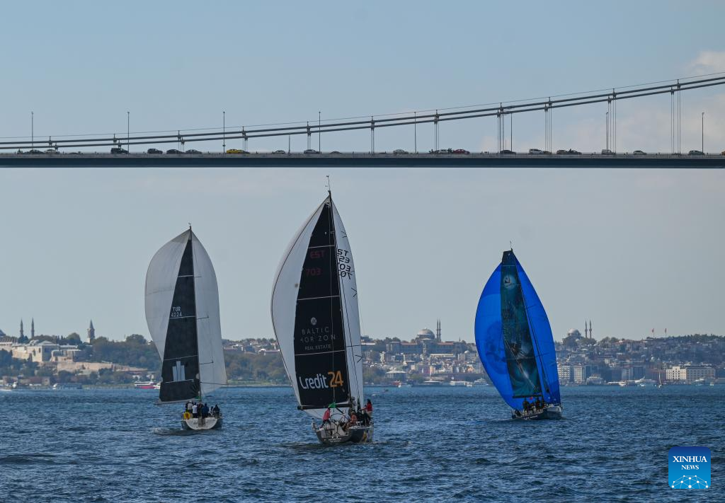 Yachts compete during the 24th Bosphorus Cup sailing event in Istanbul, Türkiye, Sept. 20, 2025. (Xinhua/Liu Lei)