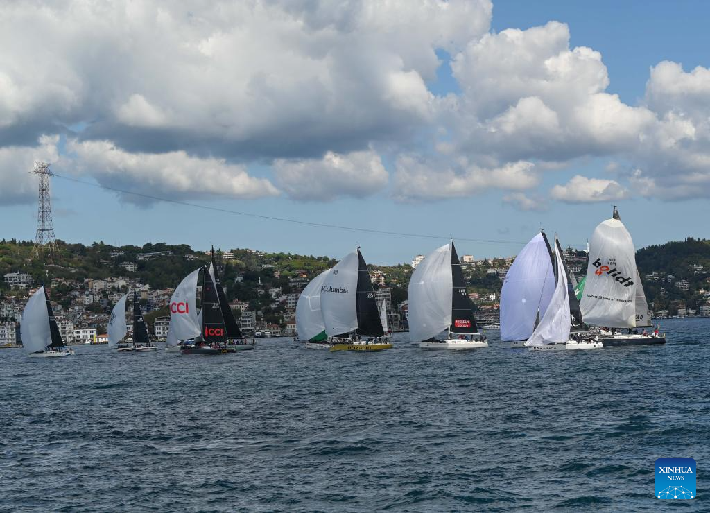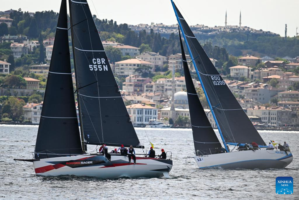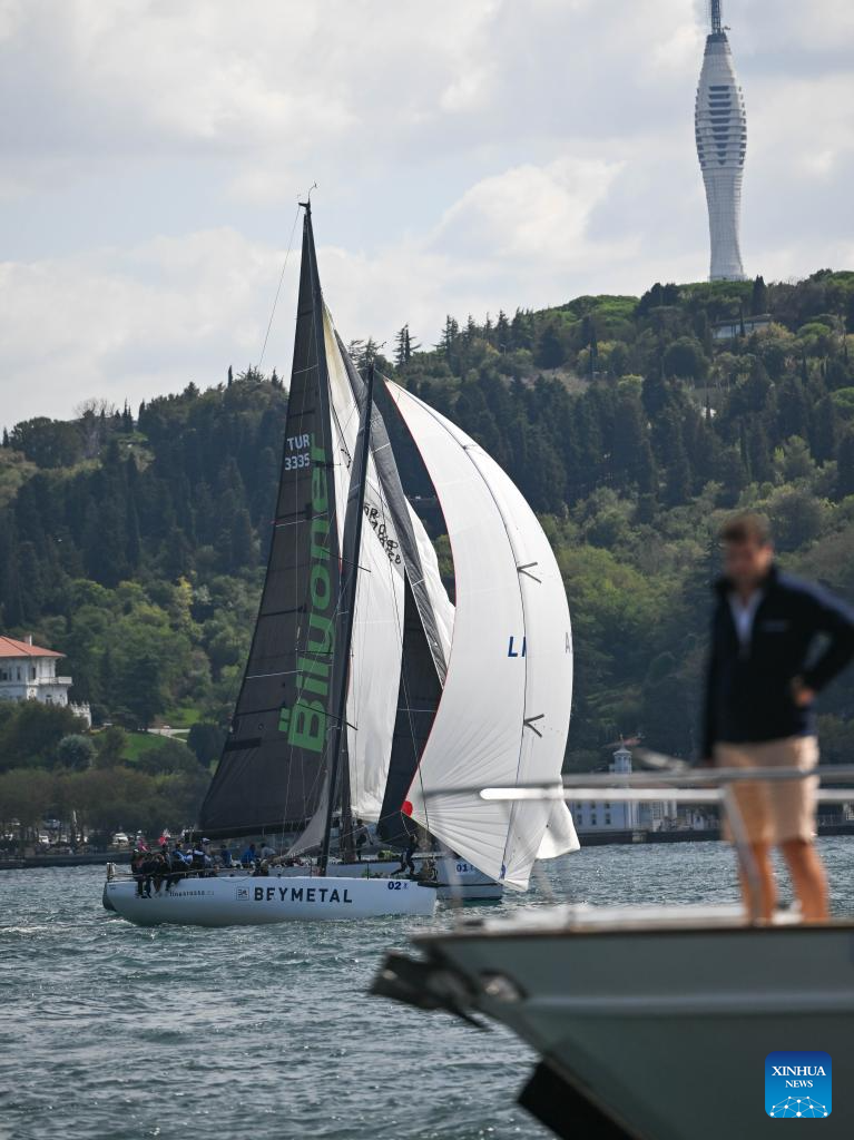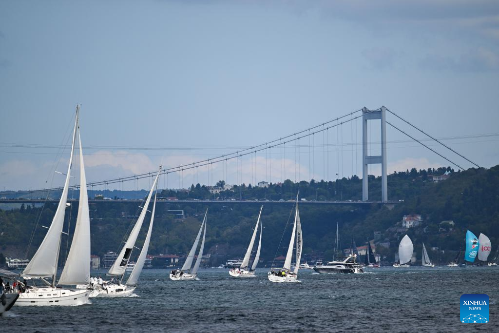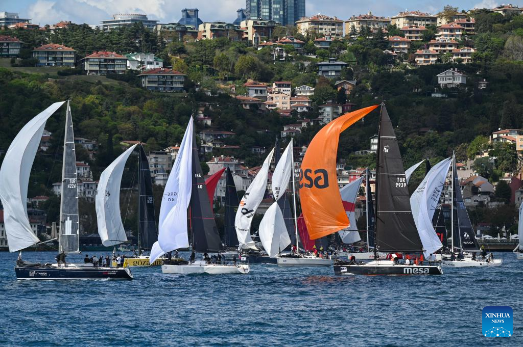 Yachts compete during the 24th Bosphorus Cup sailing event in Istanbul, Türkiye, Sept. 20, 2025. (Xinhua/Liu Lei)