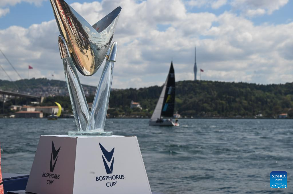 This photo taken on Sept. 20, 2025 shows the Bosphorus Cup trophy at the race venue of the 24th Bosphorus Cup sailing event in Istanbul, Türkiye, Sept. 20, 2025. (Xinhua/Liu Lei)