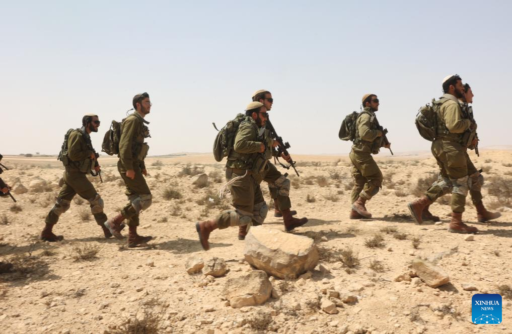 Newly recruited combat soldiers of the Israeli army take part in a training at a site in southern Israel, Sept. 21, 2025. (Photo by Gil Cohen Magen/Xinhua)