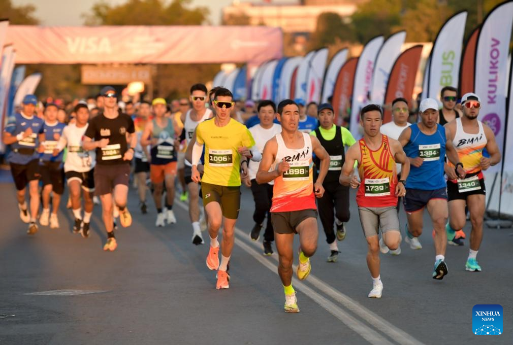 Runners participate in the Bishkek Snow Leopard Run in Bishkek, Kyrgyzstan, Sept. 21, 2025. (Xinhua)