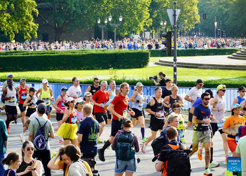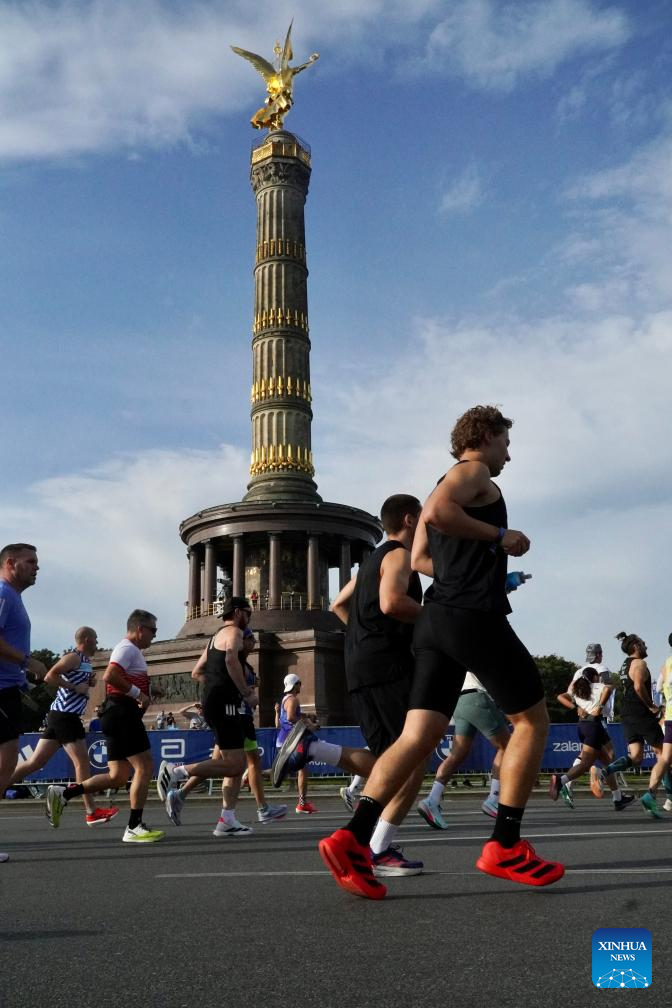 Photo taken on Sept. 21, 2025 shows participants competing during the Berlin Marathon 2025 in Berlin, Germany. (Xinhua/Zhao Jiantong)
