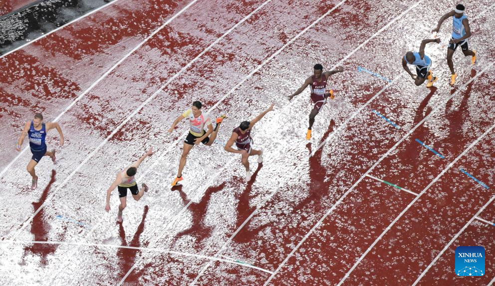 Athletes compete during the men's 4x400m relay final at the 2025 World Athletics Championships in Tokyo, Japan, Sept. 21, 2025. (Xinhua/Li Ming)