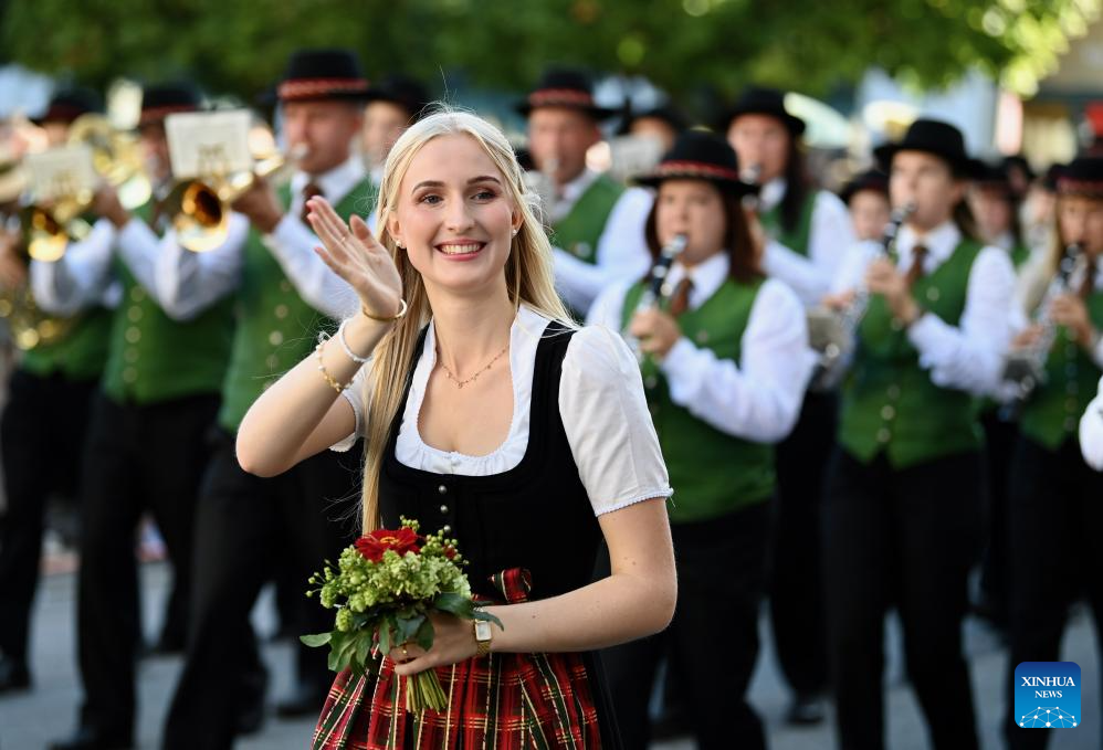 The 190th Oktoberfest, one of the largest folk festivals in Germany, opened on Saturday in Munich, with mayor Dieter Reiter tapping the first barrel of beer as a tradition. This year's festival will last until Oct. 5. (Xinhua/Zhang Haofu)