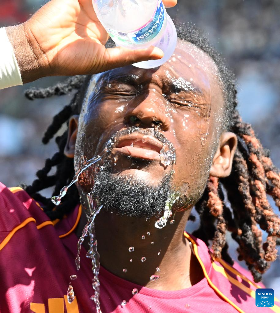 Roma's Emmanuel Kone is seen before the Serie A football match between Lazio and Roma in Rome, Italy, Sept. 21, 2025. (Photo by Alberto Lingria/Xinhua)