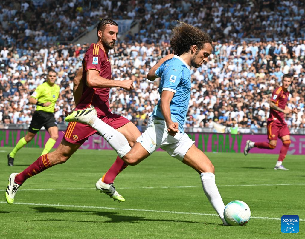 Lazio's Mateo Guendouzi competes during the Serie A football match between Lazio and Roma in Rome, Italy, Sept. 21, 2025. (Photo by Alberto Lingria/Xinhua)