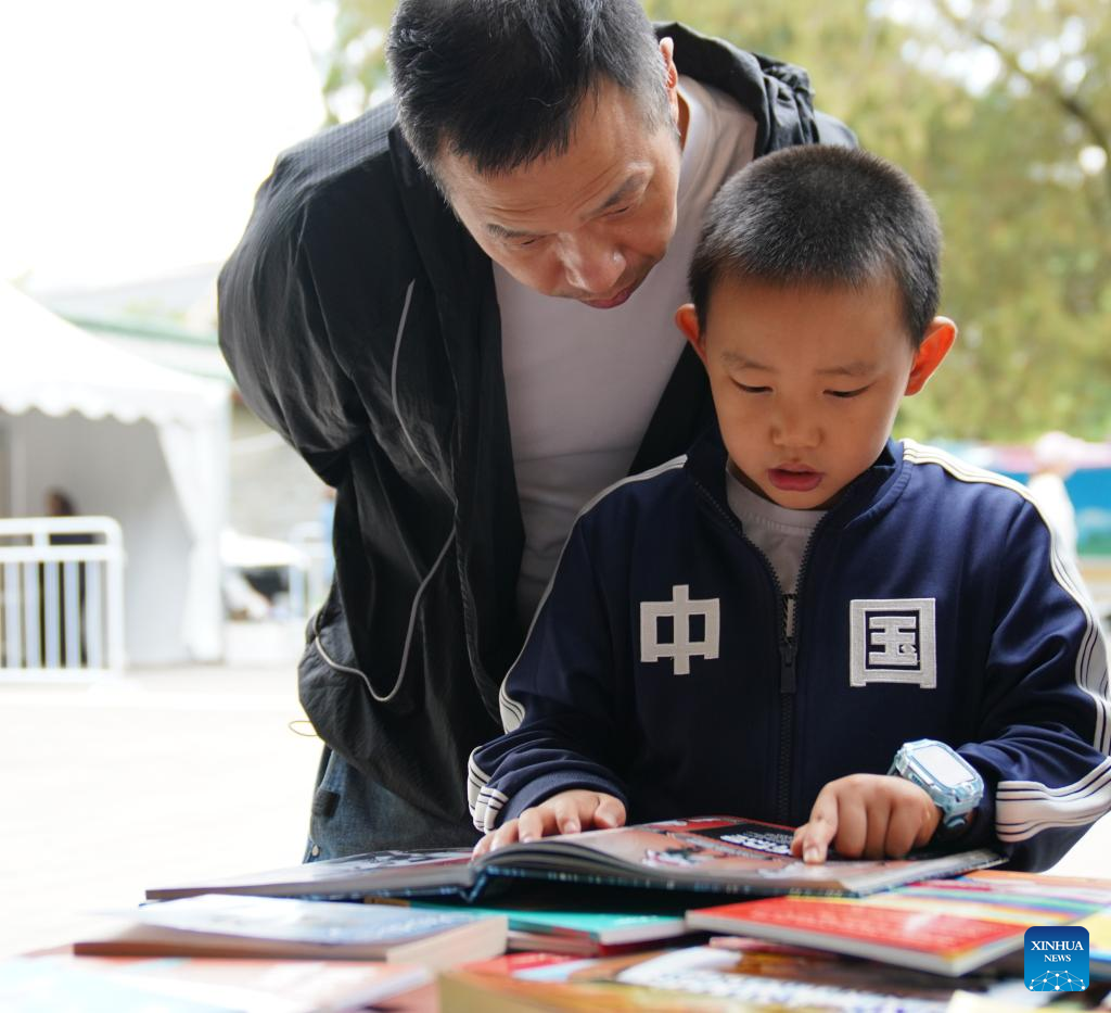 A child reads a book during the Beijing Book Fair 2025 at the Ditan Park, also known as the Temple of Earth, in Beijing, capital of China, Sept. 22, 2025. Themed "Read to Become a Better You," the 11-day Beijing Book Fair 2025 concluded at the Temple of Earth on Monday. (Xinhua/Dai Mingxuan)