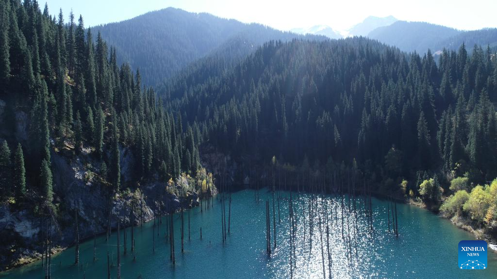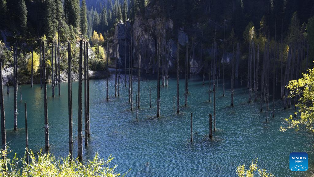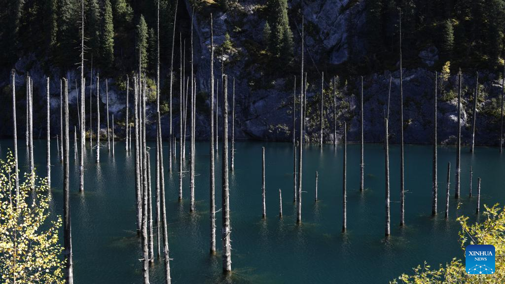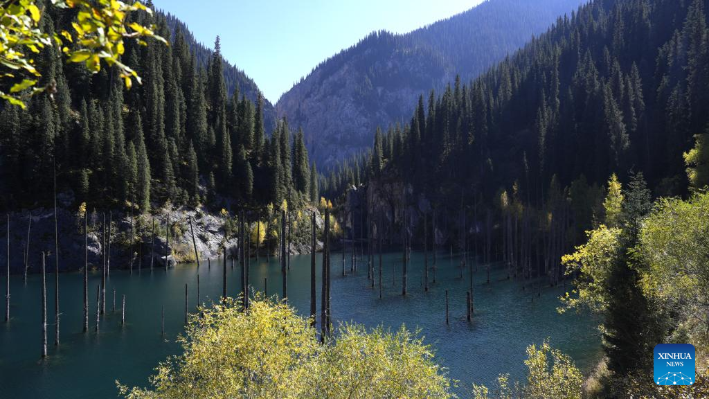 This photo taken on Sept. 21, 2025 shows the scenery of Lake Kaindy in Almaty Region, Kazakhstan. (Photo by Kalizhan Ospanov/Xinhua)