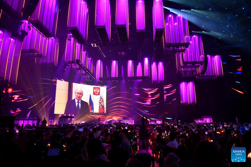 The song contest kicked off here Saturday, with the participation of artists from more than 20 countries. (Photo by Alexander Zemlianichenko Jr/Xinhua)