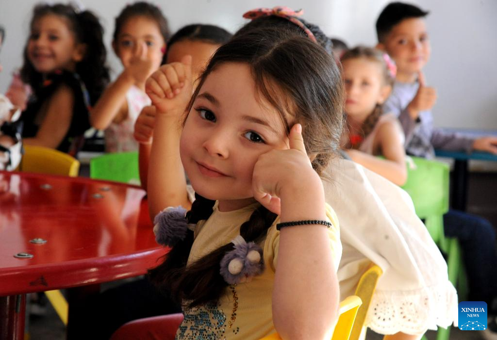 A girl poses for a photo on the first day of new academic year in Damascus, Syria, on Sept. 21, 2025. The new academic year began with about 12,000 schools open on Sunday across the country. (Photo by Ammar Safarjalani/Xinhua)