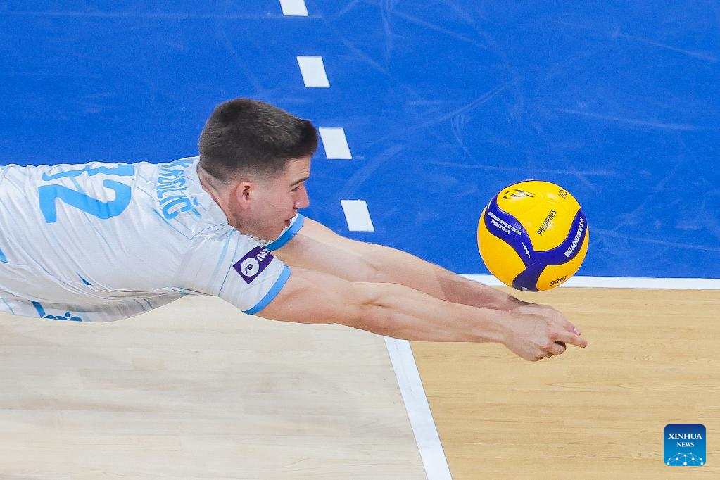 Grega Okroglic of Slovenia competes during the round of 16 match between the United States and Slovenia at the FIVB Men's World Championship 2025 in Pasay City, the Philippines, Sept. 22, 2025. (Xinhua/Rouelle Umali)