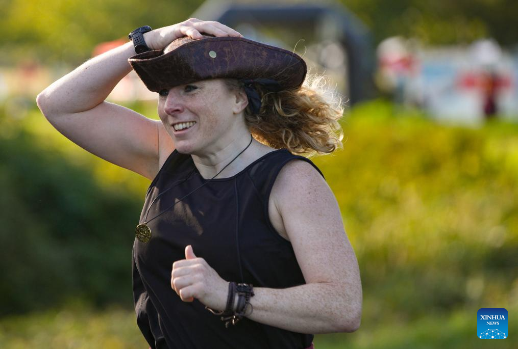 A participant dressed in a pirate-themed costume takes part in the Big Pirate Run in Richmond, British Columbia, Canada, Sept. 21, 2025.