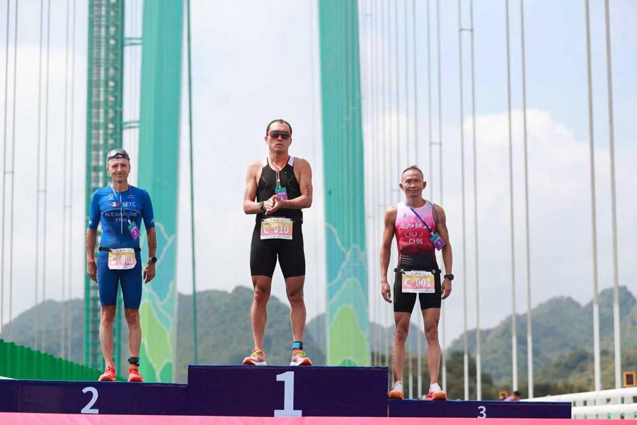 Nearly 200 athletes from more than 20 countries and regions tested their limits on a 36.75-kilometer course. The race started with a 750-meter swim in the Beipanjiang River, followed by a 26-kilometer cycling leg along gorge roads with a 798-meter elevation gain, and culminated in a 10-kilometer run finishing atop the world's highest bridge.