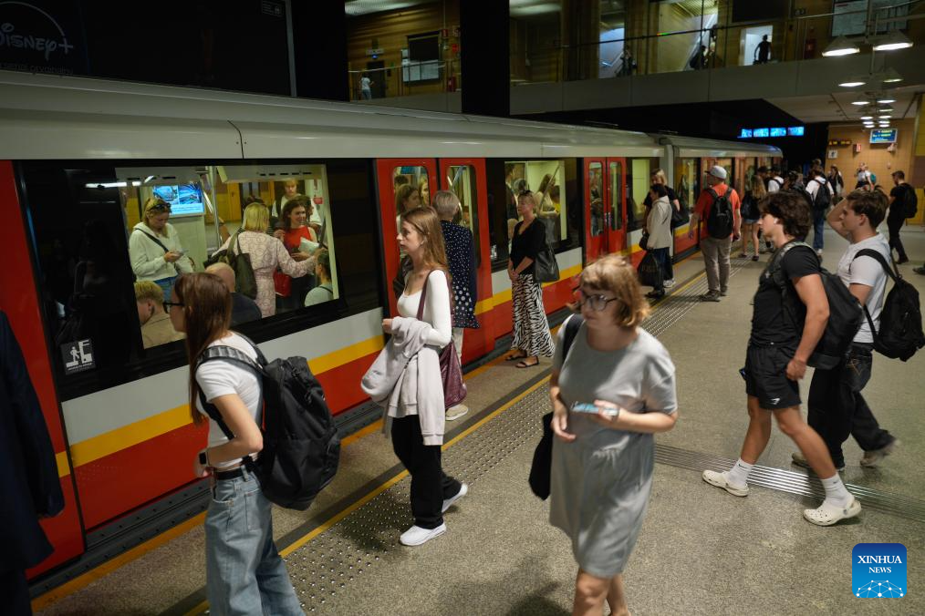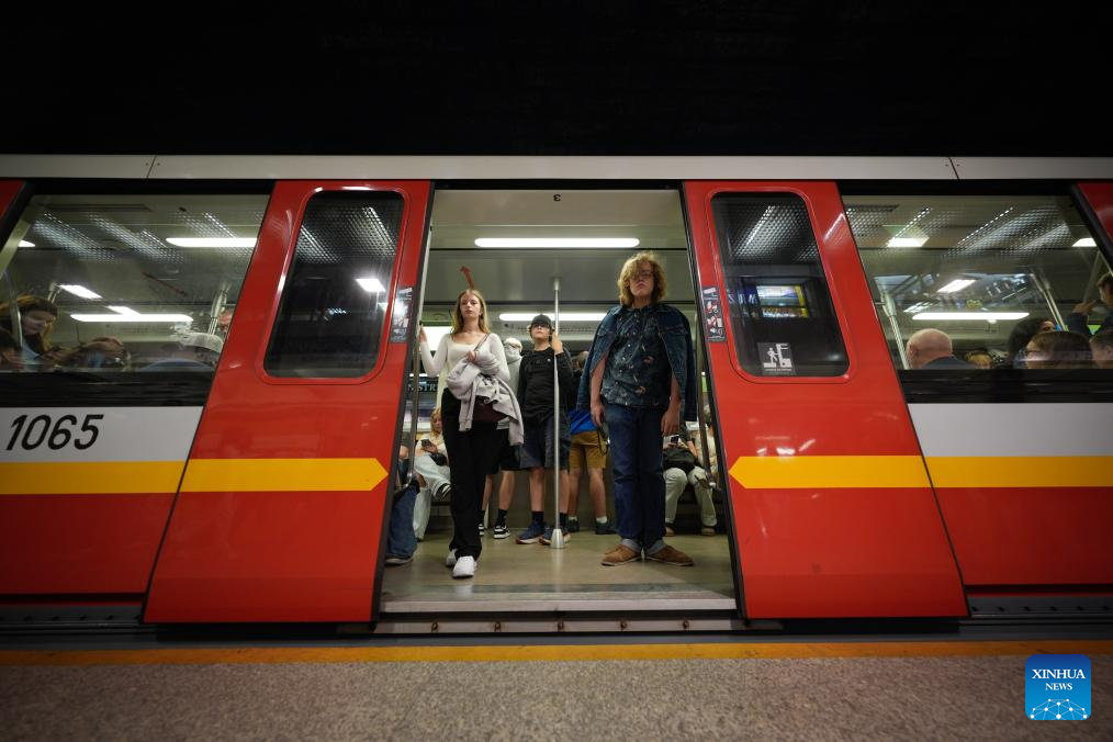 People wait for the metro train at a central metro station in Warsaw, Poland on Sept. 22, 2025. Public transportation in Warsaw was free of charge for all passengers on World Car Free Day, part of the European Mobility Week to promote sustainable urban mobility. (Photo by Jaap Arriens/Xinhua)
