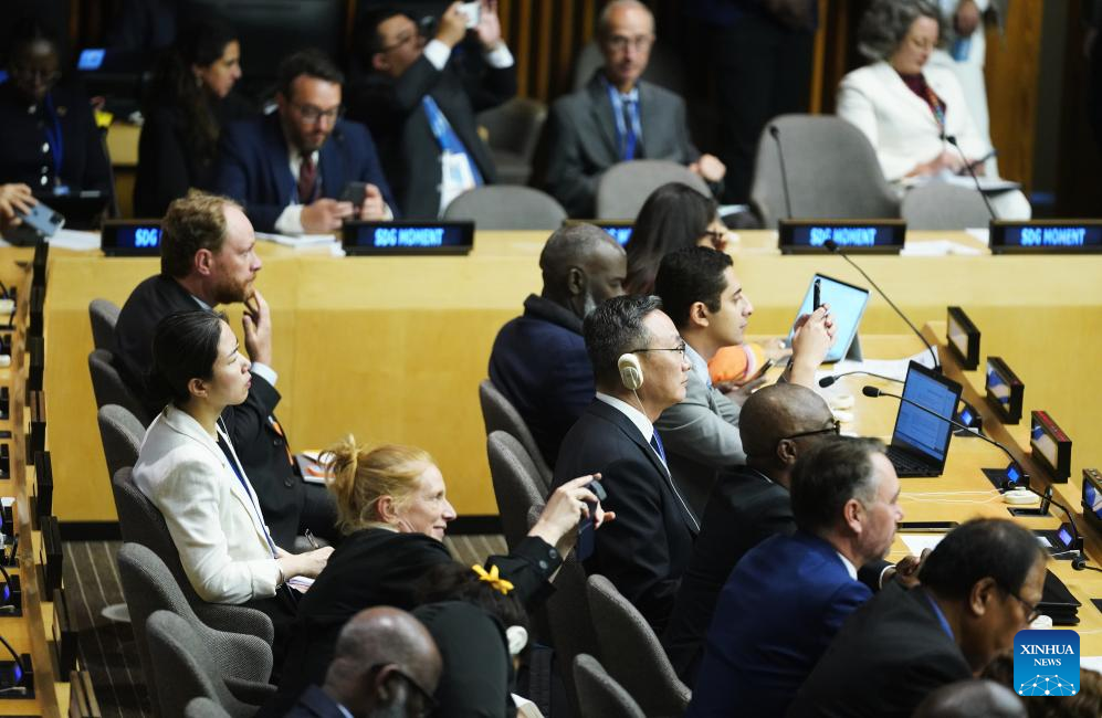 UNITED NATIONS, Sept. 22 (Xinhua) -- UN Secretary-General Antonio Guterres on Monday called for intensified efforts to achieve the Sustainable Development Goals (SDGs) at the SDG Moment event held at UN headquarters.