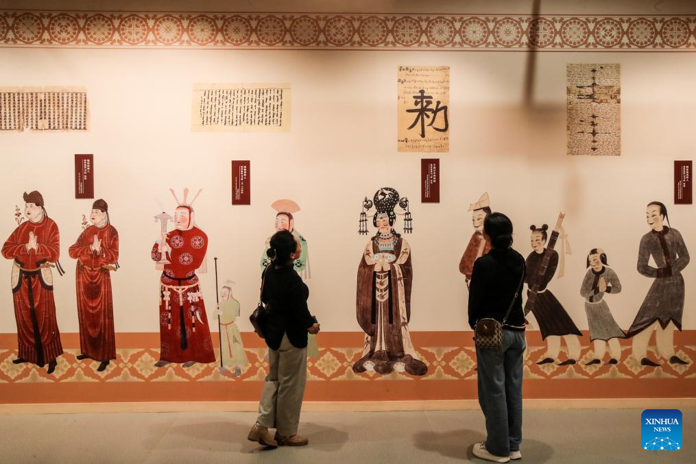 People visit an exhibition held by the Dunhuang Academy during the 8th Silk Road (Dunhuang) International Cultural Expo in Dunhuang, northwest China's Gansu Province, Sept. 22, 2025. More than 1,200 representatives from 97 countries and eight international organizations have gathered at the 8th Silk Road (Dunhuang) International Cultural Expo, which kicked off on Sunday in Dunhuang, a key hub on the ancient Silk Road in northwest China.