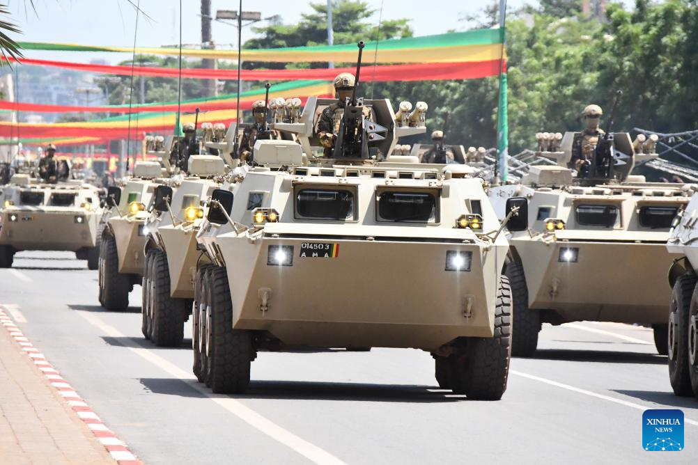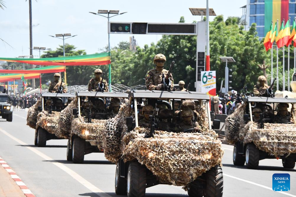 BAMAKO, Sept. 23 (Xinhua) -- Mali celebrated on Monday the 65th anniversary of its independence with a seven-hour civil and military parade, preceded in the morning by a wreath-laying ceremony at the Independence Monument by President Assimi Goita.