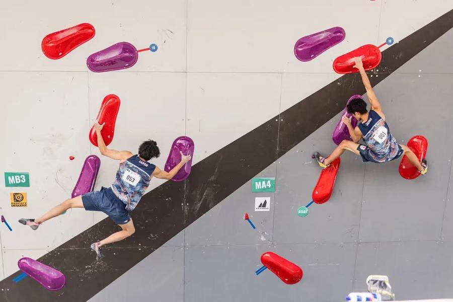 China fielded four men and four women in the boulder event, with Pan Yufei, a World Cup winner, finishing 12th in men's qualification, and Zhang Yuetong tying for 13th in the women's category. Both of them advanced to the semifinals scheduled for Saturday.