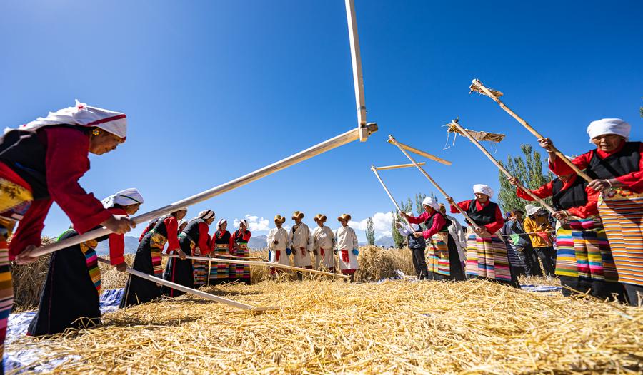 Farmers thresh the highland barley in a traditional way in Lhunzhub County, in Lhasa, southwest China's Xizang Autonomous Region, Sept. 23, 2025. (Xinhua/Tenzin Nyida)This photo taken on Sept. 23, 2025 shows highland barley ears in Lhunzhub County, in Lhasa, southwest China's Xizang Autonomous Region. (Xinhua/Tenzin Nyida)Farmers harvest highland barley in Lhunzhub County, in Lhasa, southwest China's Xizang Autonomous Region, Sept. 23, 2025. (Xinhua/Tenzin Nyida)Farmers work in highland barley fields in Lhunzhub County, in Lhasa, southwest China's Xizang Autonomous Region, Sept. 23, 2025. (Xinhua/Tenzin Nyida)Farmers work in highland barley fields in Lhunzhub County, in Lhasa, southwest China's Xizang Autonomous Region, Sept. 23, 2025. (Xinhua/Tenzin Nyida)An agricultural drone flies over a highland barley field in Lhunzhub County, in Lhasa, southwest China's Xizang Autonomous Region, Sept. 23, 2025. (Xinhua/Tenzin Nyida)Farmers harvest highland barley with a harvester in Lhunzhub County, in Lhasa, southwest China's Xizang Autonomous Region, Sept. 23, 2025. (Xinhua/Tenzin Nyida)A farmer holds highland barley ears in Lhunzhub County, in Lhasa, southwest China's Xizang Autonomous Region, Sept. 23, 2025. (Xinhua/Tenzin Nyida)This photo taken on Sept. 23, 2025 shows a field of highland barley to be harvested in Lhunzhub County, in Lhasa, southwest China's Xizang Autonomous Region, Sept. 23, 2025. (Xinhua/Tenzin Nyida)This aerial drone photo taken on Sept. 23, 2025 shows a field of highland barley to be harvested in Lhunzhub County, in Lhasa, southwest China's Xizang Autonomous Region, Sept. 23, 2025. (Xinhua/Tenzin Nyida)Farmers thresh crops in a traditional way in Lhunzhub County, in Lhasa, southwest China's Xizang Autonomous Region, Sept. 23, 2025. (Xinhua/Tenzin Nyida)Farmers are seen in a highland barley field in Lhunzhub County, in Lhasa, southwest China's Xizang Autonomous Region, Sept. 23, 2025. (Xinhua/Tenzin Nyida)■