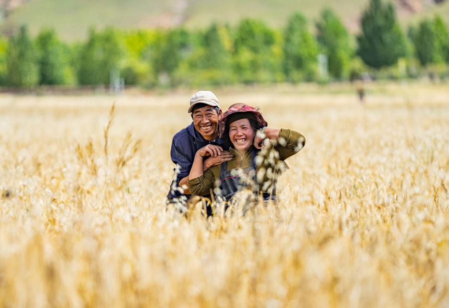 LHASA, Sept. 23 (Xinhua) -- The Chinese farmers' harvest festival is the first national festival created specifically for the country's farmers. Starting in 2018, the festival coincides with the Autumnal Equinox each year, which is one of the 24 solar terms of the Chinese lunisolar calendar and usually falls between Sept. 22 and 24 during the country's agricultural harvest season.