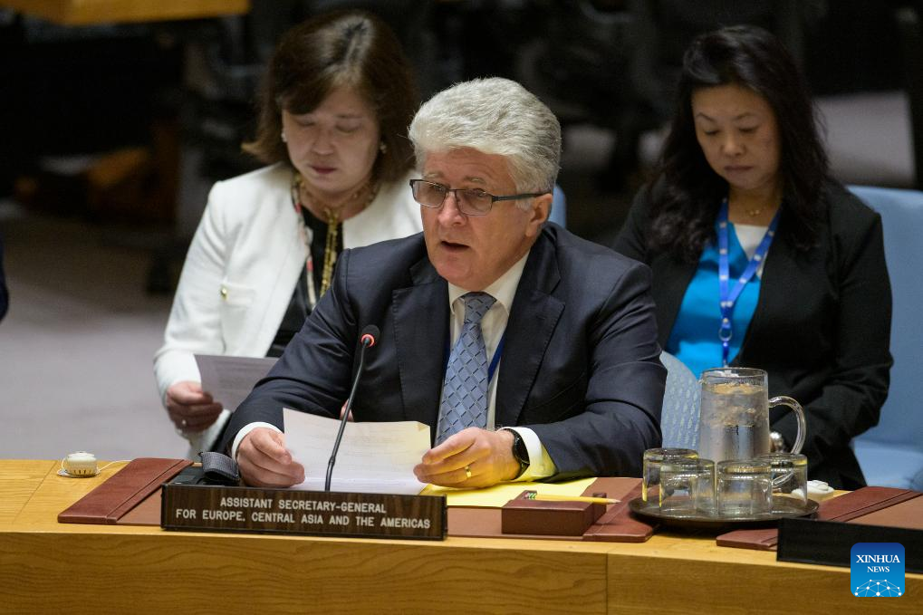 UN Assistant Secretary-General for Europe, Central Asia and the Americas Miroslav Jenca speaks at an emergency meeting of the Security Council to discuss the alleged intrusion of Estonian airspace by Russian fighter jets, at the UN headquarters in New York, Sept. 22, 2025. (Manuel Elias/UN Photo/Handout via Xinhua)