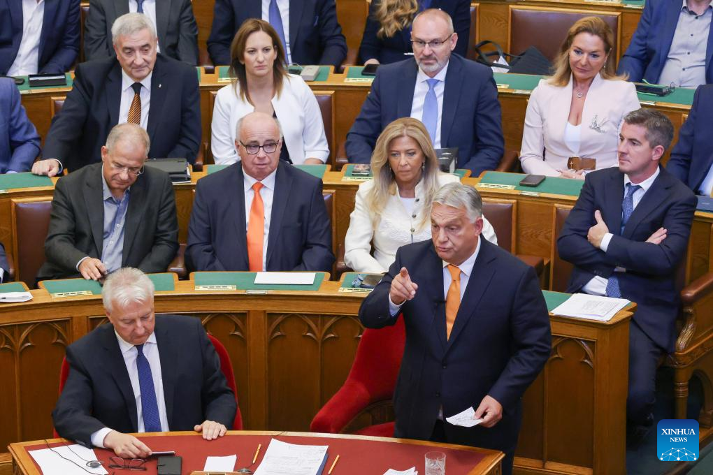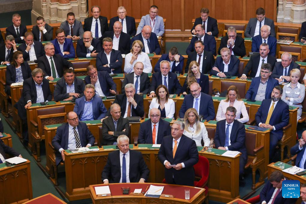 Orban on Monday warned that the European Union (EU) faces decline unless it undertakes an urgent change of course, while also stressing Hungary's positions on Ukraine, migration, and energy security in his opening speech to parliament's autumn session. (Photo by Attila Volgyi/Xinhua)