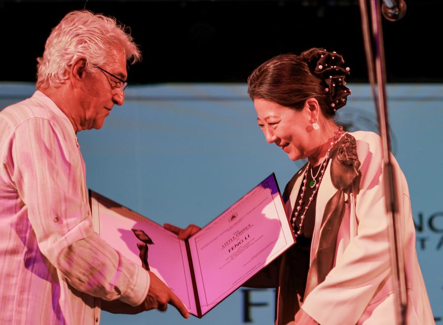 SUBOTICA, Serbia, Sept. 22 (Xinhua) -- Chinese artist Feng Li received the "Little Prince Lifetime Achievement Award" at the 32nd International Festival of Children's Theatres in Subotica, Serbia, on Sunday, becoming the first Chinese laureate of the festival's highest honor.