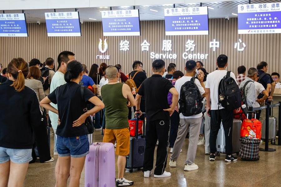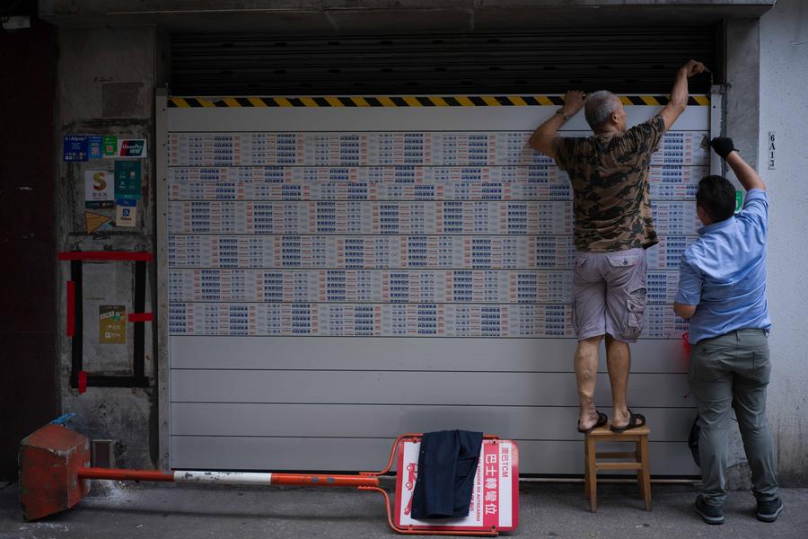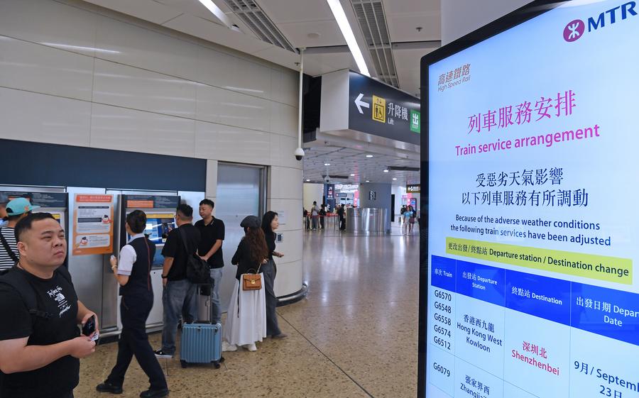 A passenger checks the train service arrangement at a railway station in Hong Kong, south China, Sept. 23, 2025. (Xinhua/Chen Duo)People install flood barriers at a doorway as super typhoon Ragasa approaches in Macao, south China, Sept. 23, 2025. (Photo by Cheong Kam Ka/Xinhua)Citizens are seen at an emergency shelter center as super typhoon Ragasa approaches in Macao, south China, Sept. 23, 2025. (Photo by Cheong Kam Ka/Xinhua)A drone photo taken on Sept. 23, 2025 shows ships docking at a port in Haikou, south China's Hainan Province. (Xinhua/Pu Xiaoxu)A fisherman fixates a fishing boat in Haikou, south China's Hainan Province, Sept. 23, 2025. (Xinhua/Pu Xiaoxu)Fishing boats are docked to shelter from the wind in Haikou, south China's Hainan Province, Sept. 23, 2025. (Xinhua/Pu Xiaoxu)Workers trim branches near wires in Haikou, south China's Hainan Province, Sept. 23, 2025. (Xinhua/Guo Cheng)An aerial drone photo taken on Sept. 23, 2025 shows fishing boats berthing at a fishing port on the Hailing Island in Yangjiang City, south China's Guangdong Province. (Xinhua/Deng Hua)An aerial drone photo taken on Sept. 23, 2025 shows fishing boats berthing at a fishing port on Hailing Island in Yangjiang City, south China's Guangdong Province. (Xinhua/Deng Hua)A waiter of a restaurant arranges outdoor furniture in Shenzhen, south China's Guangdong Province, Sept. 23, 2025. (Xinhua/Mao Siqian)Boards are installed to resist wind on a glass door at a service area of an expressway in Jiangmen City, south China's Guangdong Province, Sept. 23, 2025. (Xinhua/Deng Hua)Boards are installed to resist wind at a restaurant on Hailing Island in Yangjiang City, south China's Guangdong Province, Sept. 23, 2025. (Xinhua/Deng Hua)This photo taken on Sept. 23, 2025 shows fishing boats berthing at a fishing port on the Hailing Island in Yangjiang City, south China's Guangdong Province. (Xinhua/Deng Hua)A boat picks fishermen ashore at a fishing port on the Hailing Island in Yangjiang City, south China's Guangdong Province, Sept. 23, 2025. (Xinhua/Deng Hua)A woman rides against wind in Shenzhen, south China's Guangdong Province, Sept. 23, 2025. (Xinhua/Mao Siqian)A staff member sticks adhesive strips on windows of a shopping mall in Shenzhen, south China's Guangdong Province, Sept. 23, 2025. South China's Guangdong Province raised its wind emergency response to the highest level at 10 a.m. (Xinhua/Mao Siqian)Passengers line up to apply for ticket changes and refunds at the service center of Guangzhou South Railway Station in Guangzhou, south China's Guangdong Province, Sept. 23, 2025. (Xinhua/Liu Dawei)■