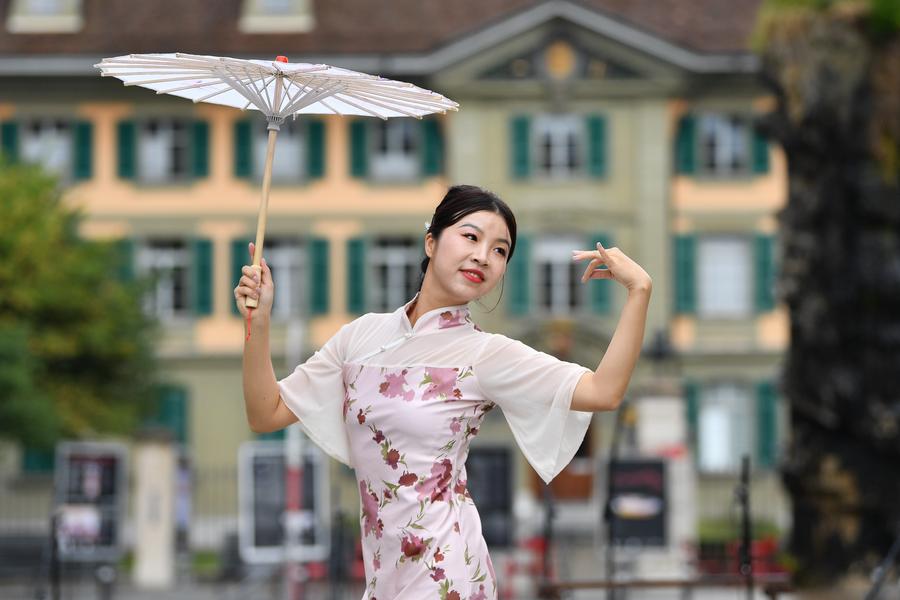 BERN, Switzerland, Sept. 22 (Xinhua) -- Under a freshly cleared Sunday sky at Waisenhausplatz in Bern, Switzerland, the "Hello! China" cultural and tourism promotion event drew crowds with a vibrant showcase of Chinese music and dance.