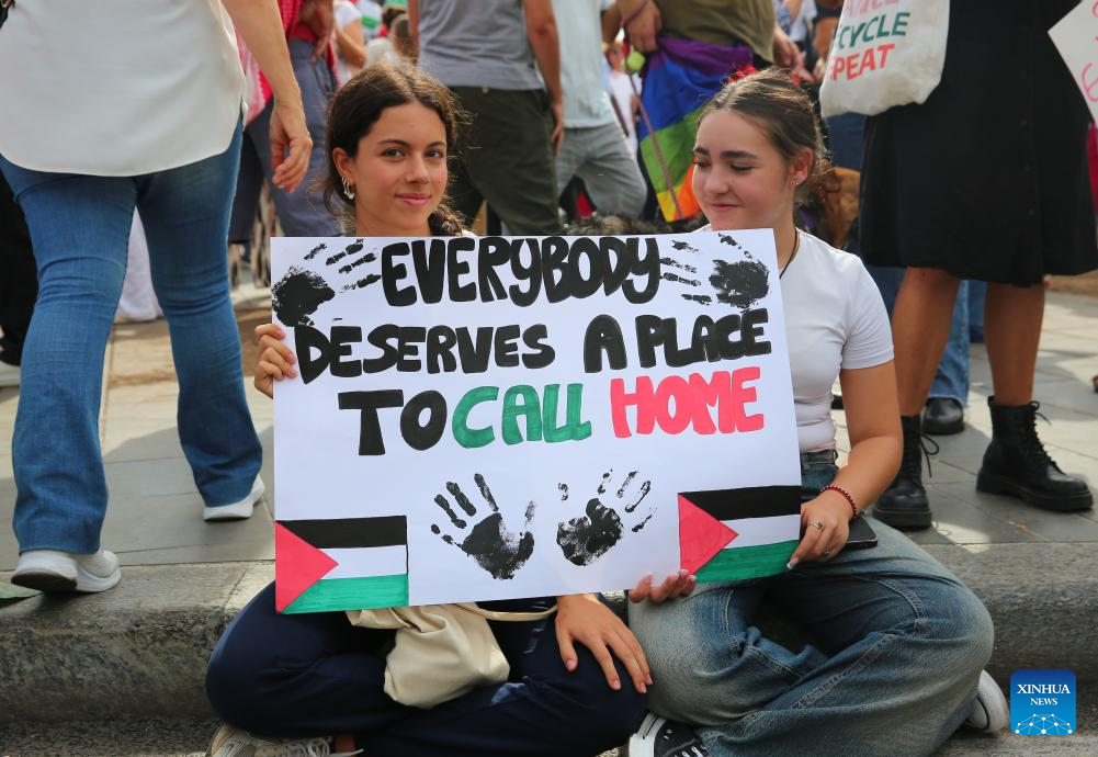 Students participate in a pro-Palestinian protest in Rome, Italy, on Sept. 22, 2025. (Xinhua/Li Jing)