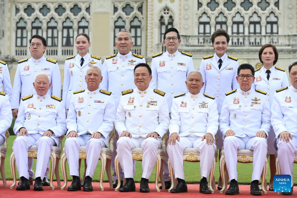 The 36-member cabinet under the Bhumjaithai Party-led coalition recited the oath of allegiance before an audience with King Maha Vajiralongkorn in a traditional ceremony held at Dusit Palace in the capital, Bangkok. (Xinhua/Rachen Sageamsak)