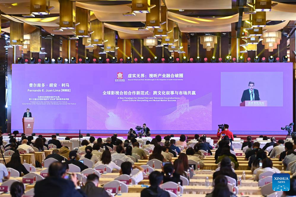 This photo shows a parallel forum themed on "Beyond Virtual and Real: Breakthroughs in the Integration of Audio-visual Industry" during the 2025 Beijing Culture Forum in Beijing, capital of China, Sept. 23, 2025.