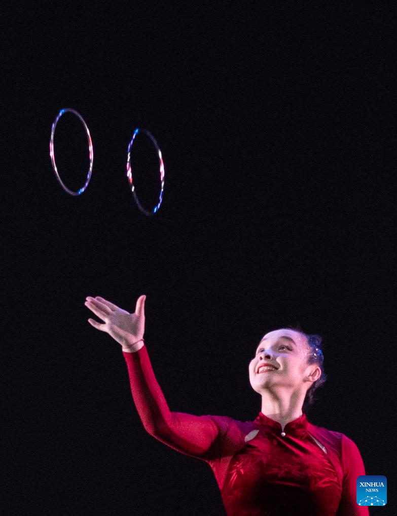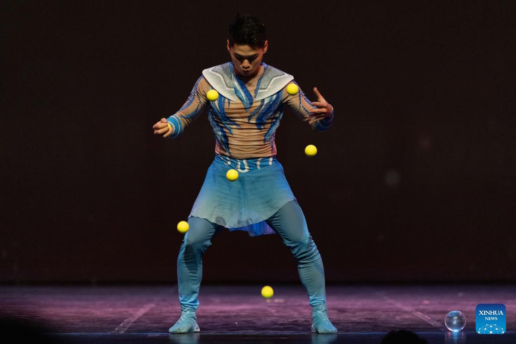 China's Henan Acrobatics Group staged multiple performances here from Monday to Tuesday. (Xinhua/Li Mengxin)