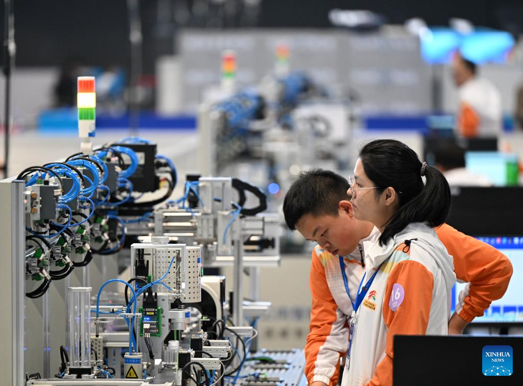 Among all the 106 events of the competition, half of them were held centering emerging fields such as intelligent manufacturing, industrial internet and artificial intelligence. These events signaled new trends in vocational skills development and highlighted the vitality of China's new generation of skilled talents. (Xinhua/Hao Yuan)