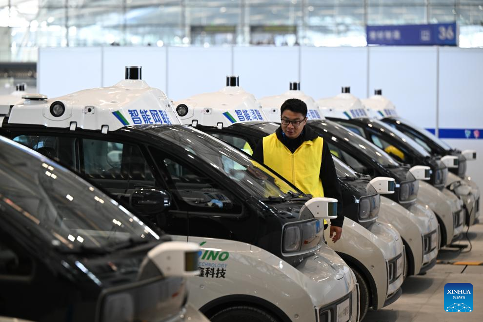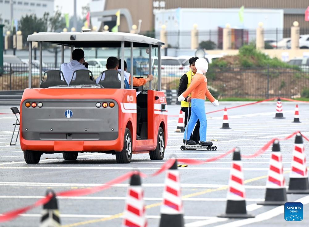 A staff member debugs vehicles to be used in an intelligent connected vehicle operation and maintenance event during the third Vocational Skills Competition in Zhengzhou, central China's Henan Province, Sept. 20, 2025.