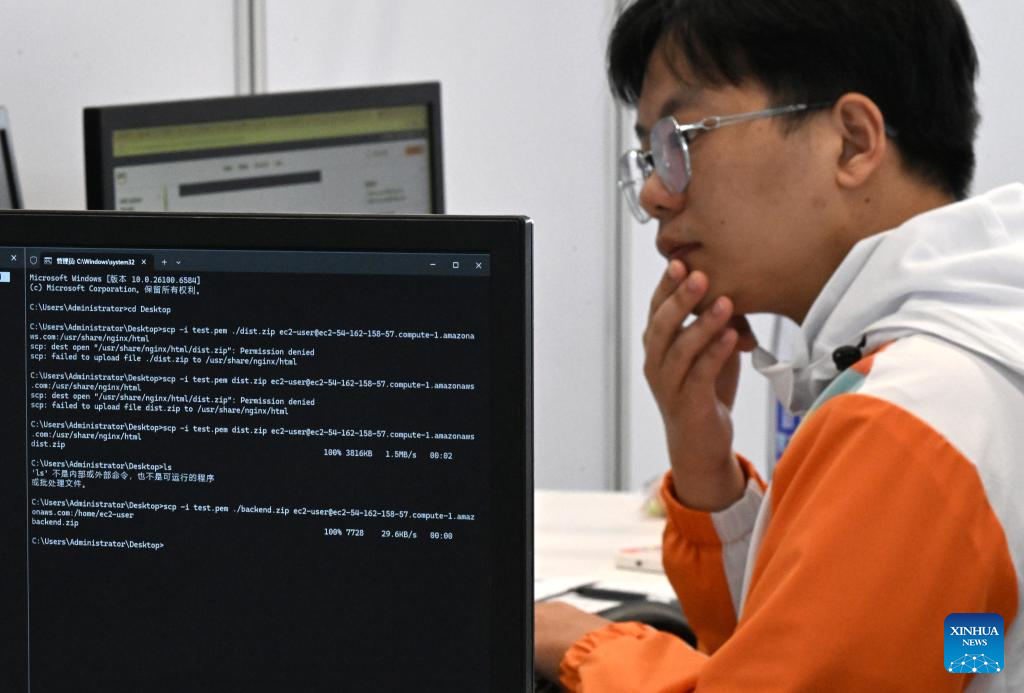 A contestant participates in a cloud computing event during the third Vocational Skills Competition in Zhengzhou, central China's Henan Province, Sept. 21, 2025.
