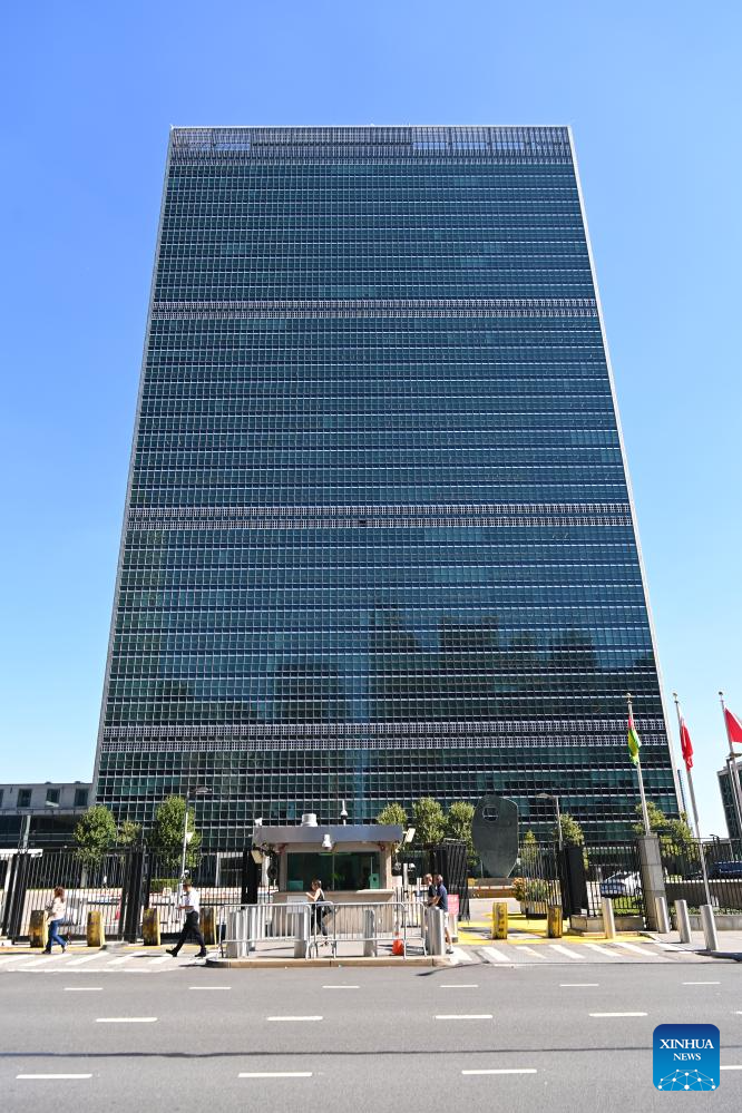 This photo taken on Sept. 18, 2025 shows the exterior view of the United Nations headquarters in New York. This year marks the 80th anniversary of the founding of the United Nations. (Xinhua/Li Rui)