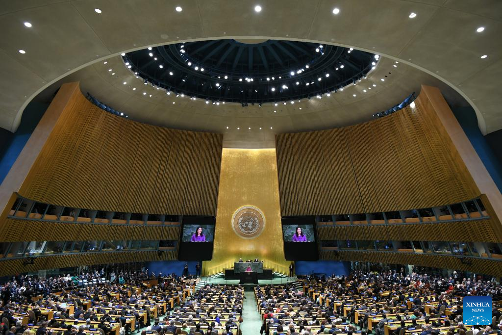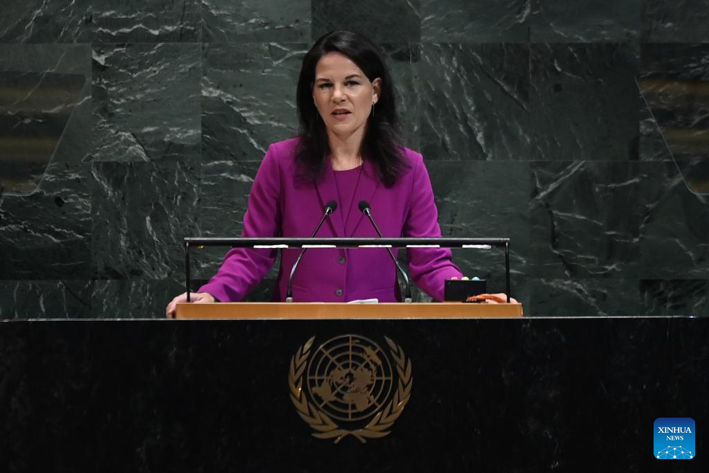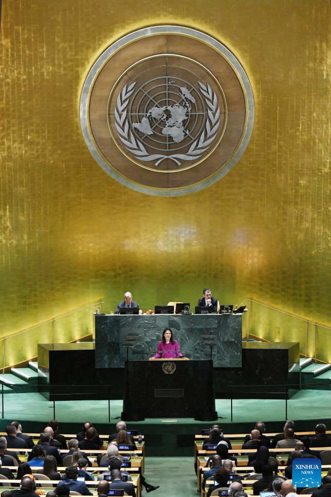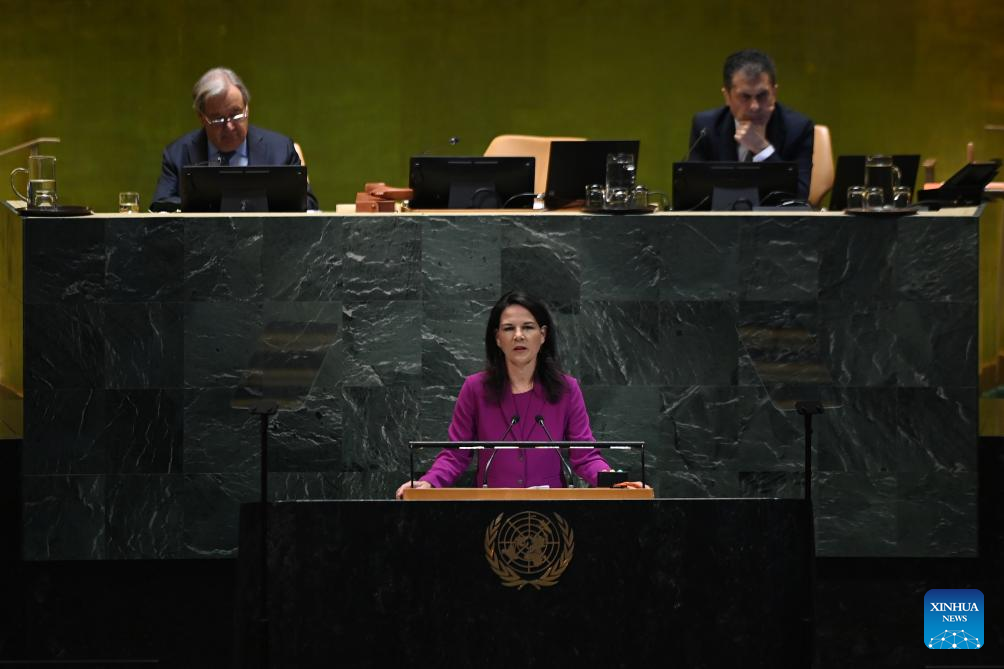 United Nations General Assembly President Annalena Baerbock delivers a speech at the opening ceremony of the General Debate of the 80th session of the United Nations General Assembly (UNGA) at the UN headquarters in New York, Sept. 23, 2025. Representatives from United Nations (UN) member states, including some 150 heads of state and government, will take turns at the podium of the UN General Assembly (UNGA) to deliver an address on global issues during the UNGA general debate that kicked off on Tuesday. (Xinhua/Li Rui)