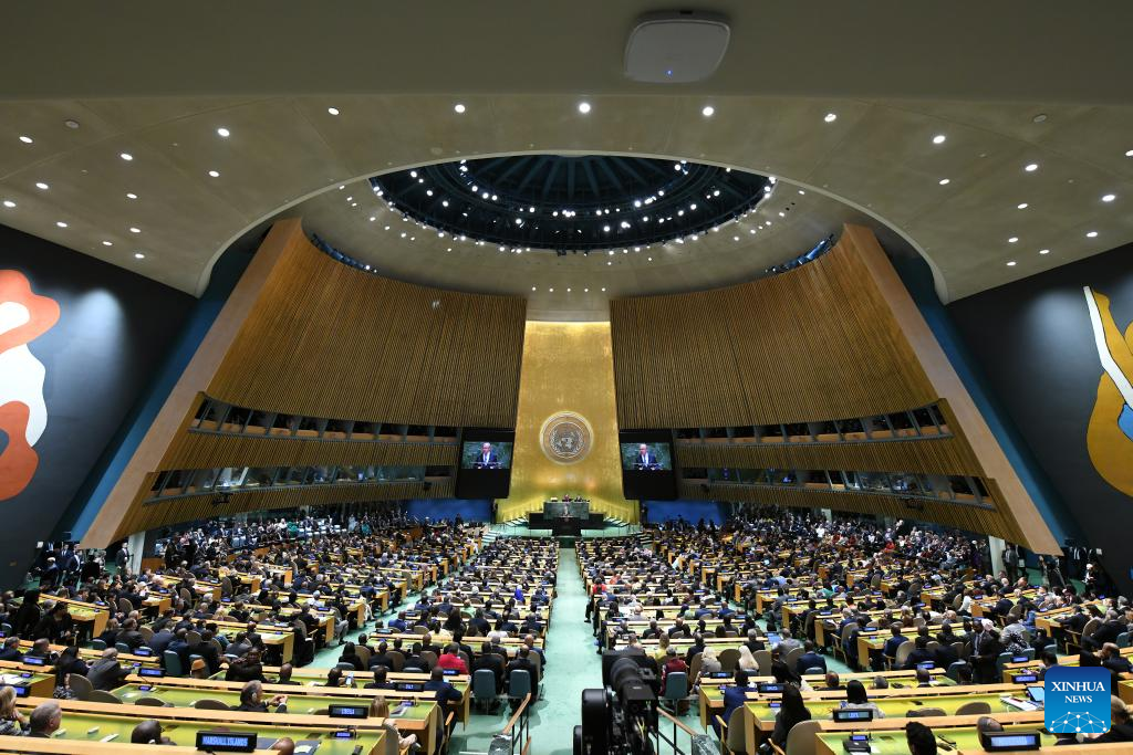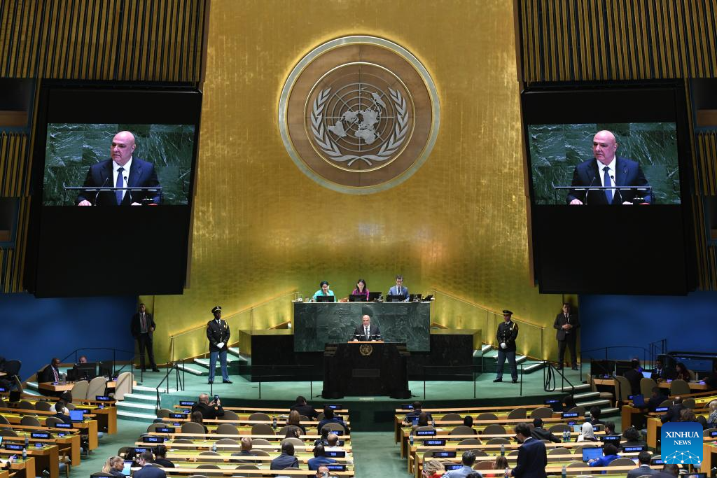 UN Secretary-General Antonio Guterres delivers a speech at the opening ceremony of the General Debate of the 80th session of the United Nations General Assembly (UNGA) at the UN headquarters in New York, Sept. 23, 2025. Representatives from United Nations (UN) member states, including some 150 heads of state and government, will take turns at the podium of the UN General Assembly (UNGA) to deliver an address on global issues during the UNGA general debate that kicked off on Tuesday. (Xinhua/Li Rui)
